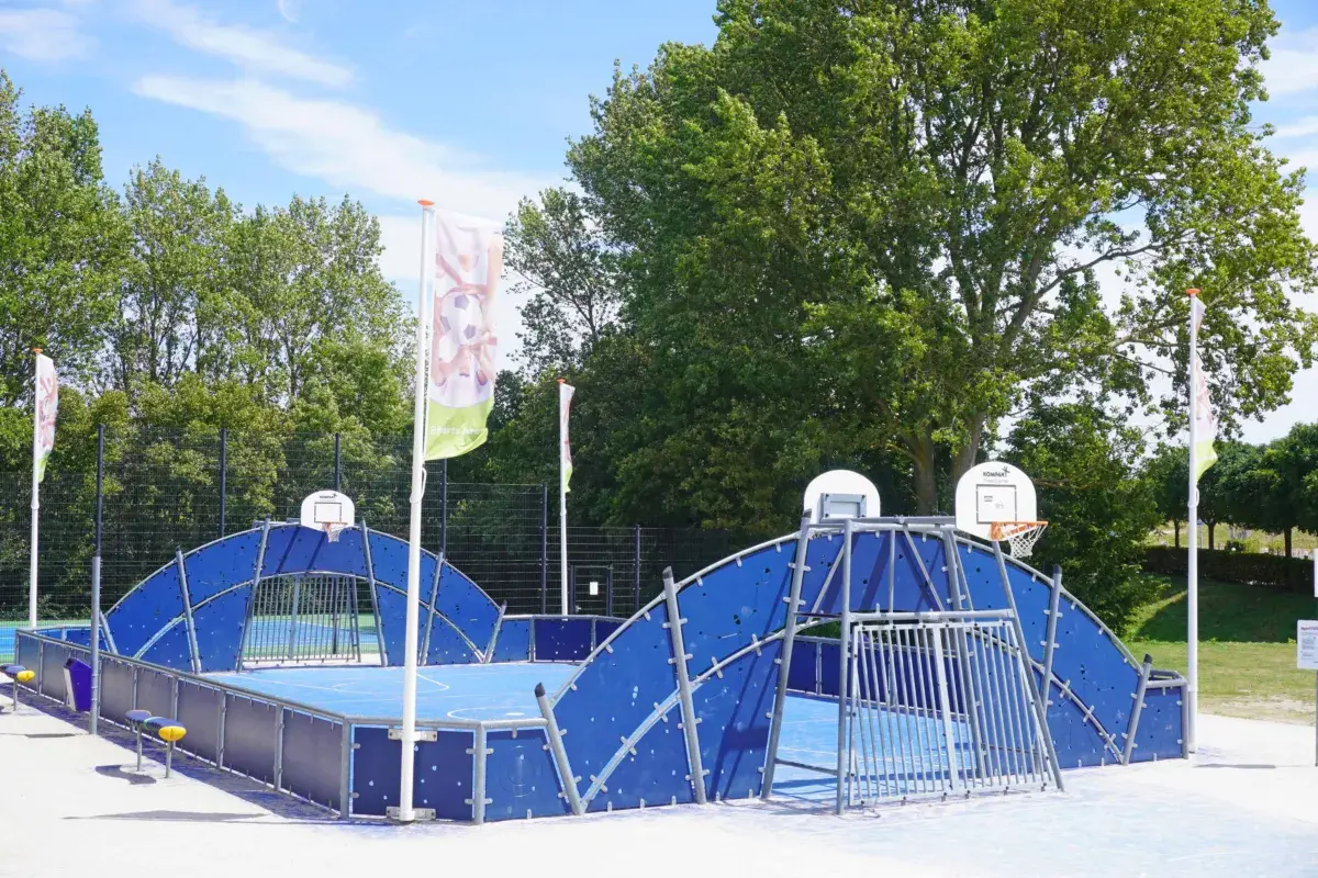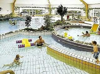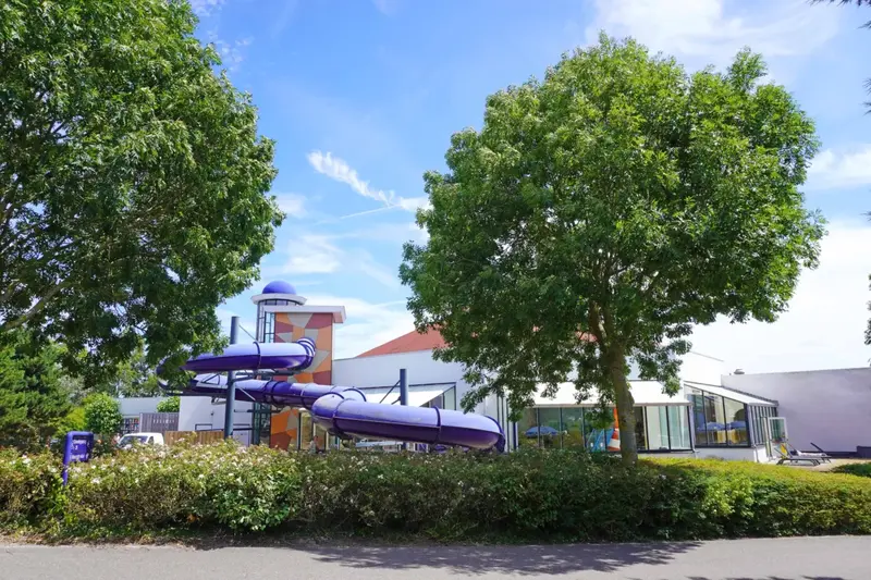 A child-friendly swimming pool, suitable even for babies, with a slide for older children and an on-site restaurant for convenient dining on the park.